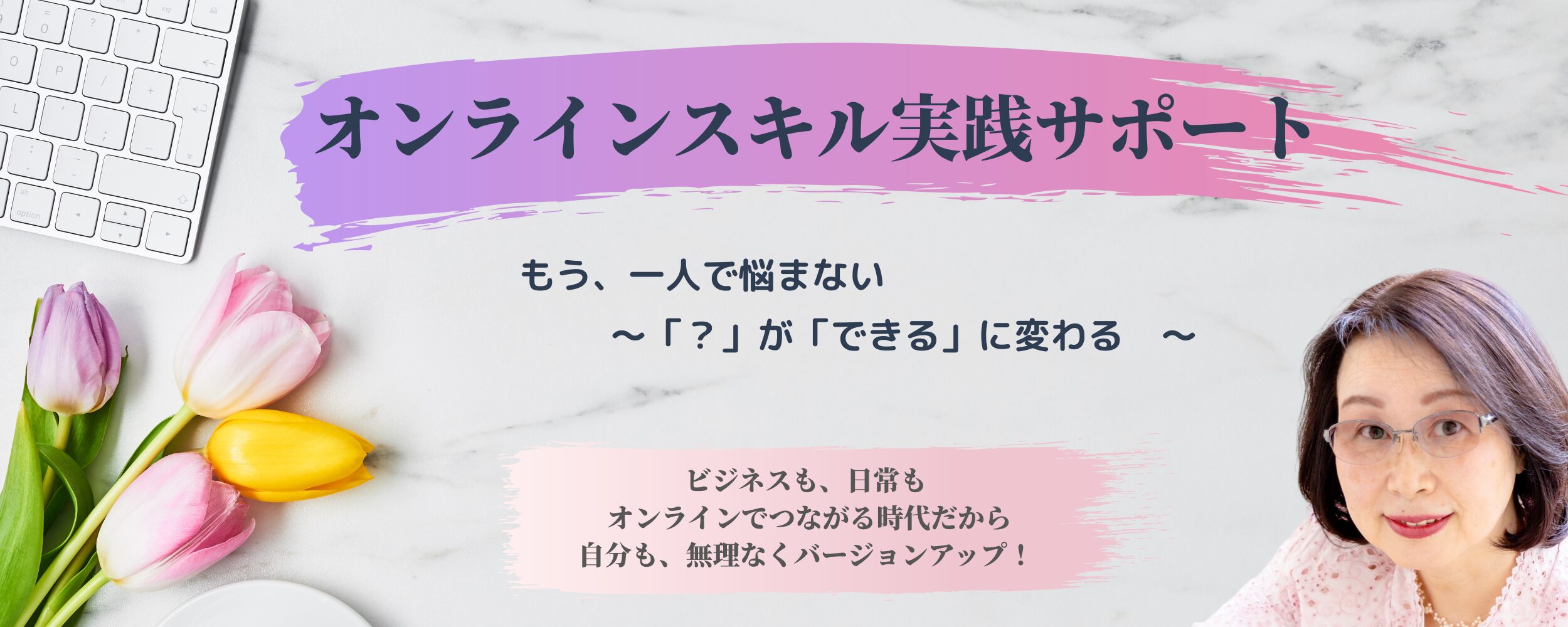 オンラインスキルを実践的にサポートし、ツールの使い方だけでなく、パソコンの中の環境や使い方そのものを整えながら、“できる”に変えていくサポートです。